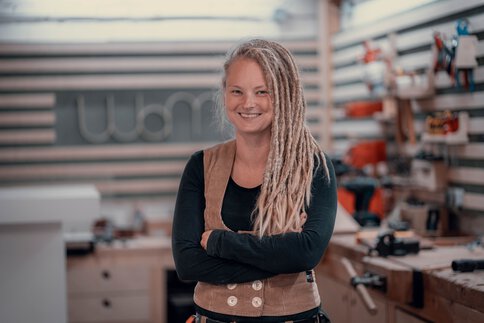 Lisa Wiedemann arbeitet als selbstständige Tischlerin und entwickelt ihren Schwerpunkt im individuellen Möbelbau stetig weiter. Besonders reizt sie die Arbeit mit Massivholz und maßgefertigten Einzelstücken.