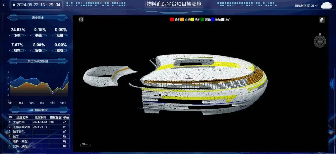 On this basis, robotic surveying and positioning systems were employed to transfer installation points directly from the digital model to the construction site. In addition, robotic multi-point forming processes were used to fabricate the curved facade elements with high precision. Combined with RFID-based material tracking, this created an end-to-end system in which design, fabrication, and construction were synchronized. This allowed the complex architectural form to be realized with spatial clarity without compromising the underlying design intent due to construction constraints.